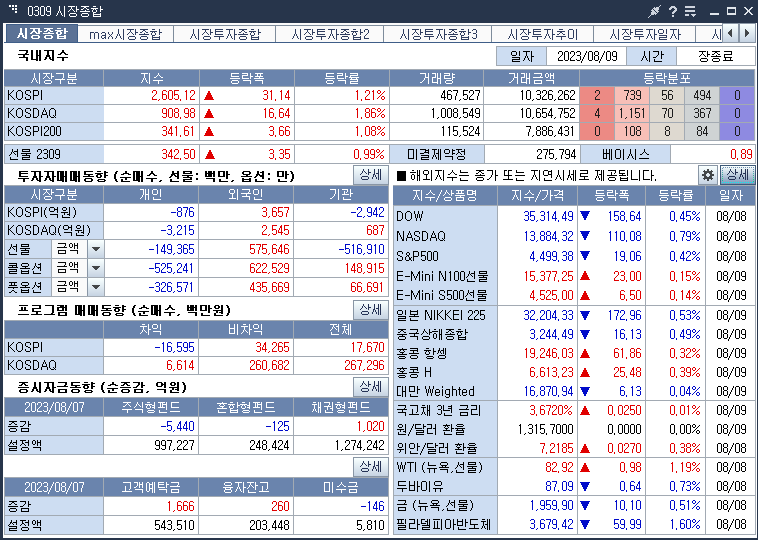 2023년 8월 9일 오늘의 주식 분석 마감 시황