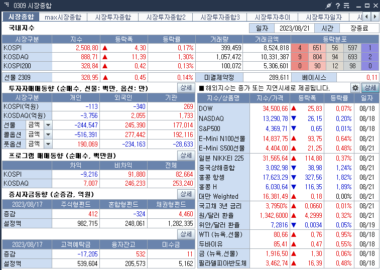 2023년 8월 21 오늘의 주식 분석 마감 시황