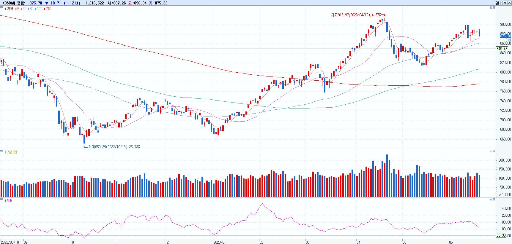 코스피 사흘 연속하락으로 결국 코스피는 20일선 뚫고 내려갔습니다. 완벽한 조정장의 모습을 보이며 그동안 상승에 대한 이익실현이 이루어지는 모습입니다.
