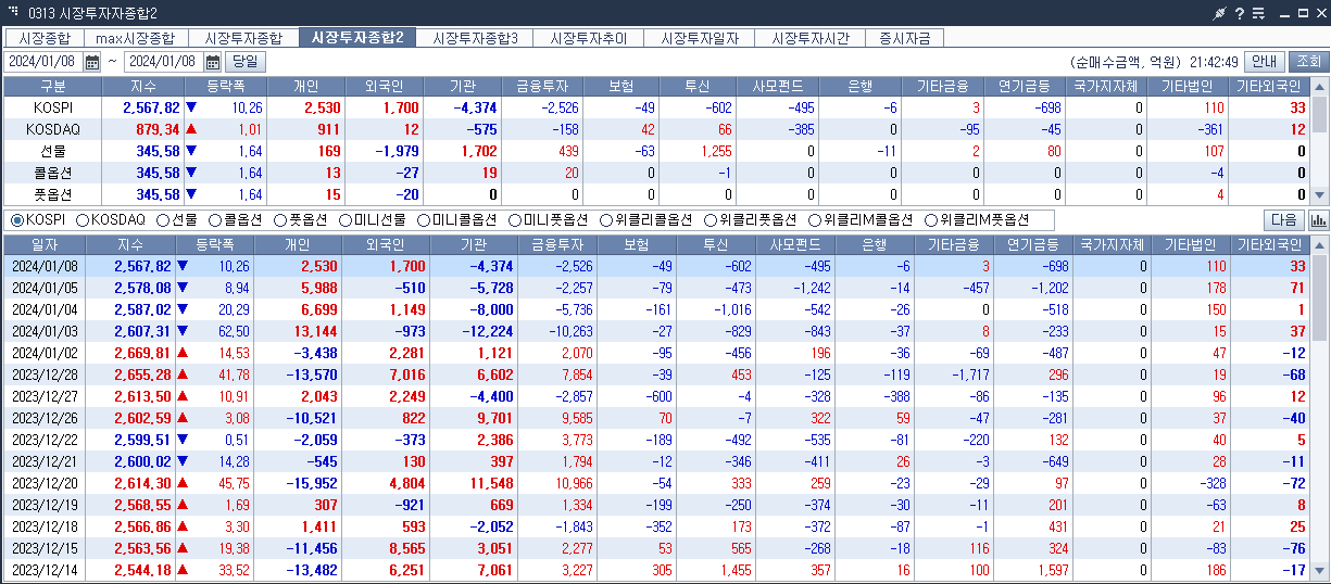 2024년 1월 8일 오늘의 주식 분석 마감 시