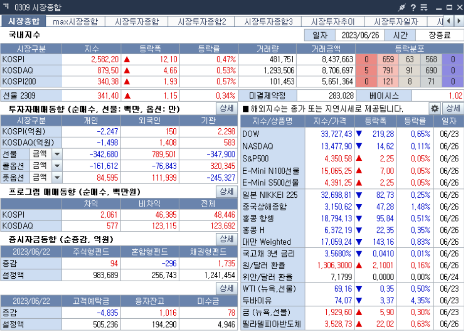 오늘 KOSPI는 2582 0.47%상승 KOSDAQ 979 0.53% 상승으로 마감하였습니다.
