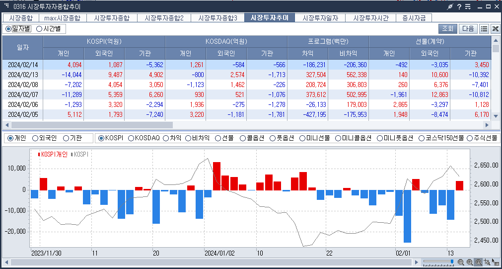 2024년 2월 14일 오늘의 주식 분석 마감 시황