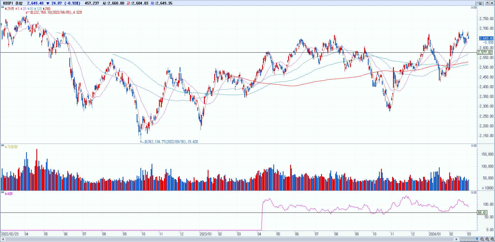 KOSPI 2649.4 -0.93% 하락, KOSDAQ 866.37 -0.76% 하락