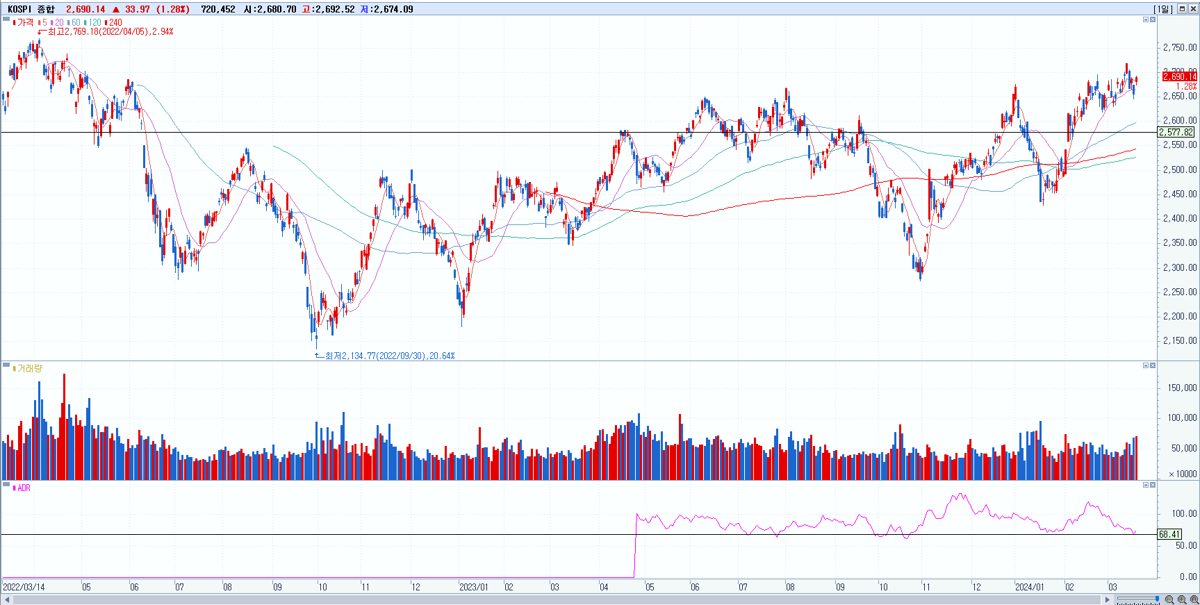 KOSPI 2690.14 +1.28% 상승, KOSDAQ 891.45 -0.05% 하락