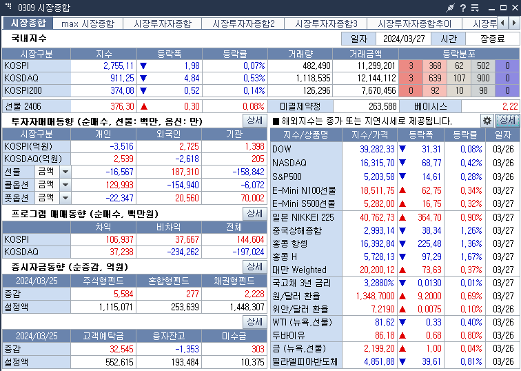 KOSPI 2755.11 -0.07하락 KOSDAQ 911.25 -0.53% 하락