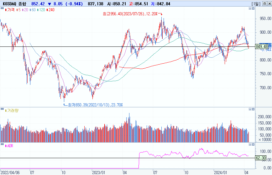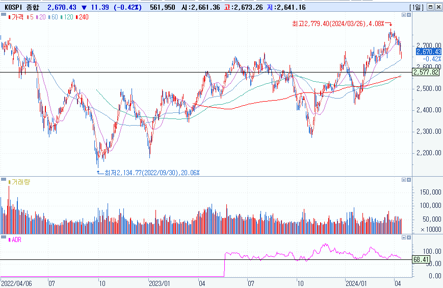 KOSPI 2670.43 -0.42%하락, KOSDAQ 853.42 - 0.94% 하락