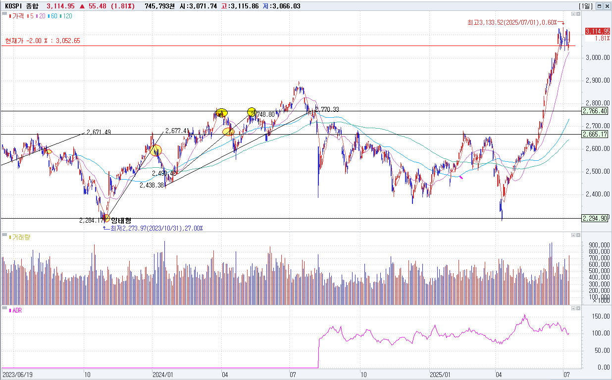마감지수 : KOSPI 3,114.95(+55.48P/+1.81%)