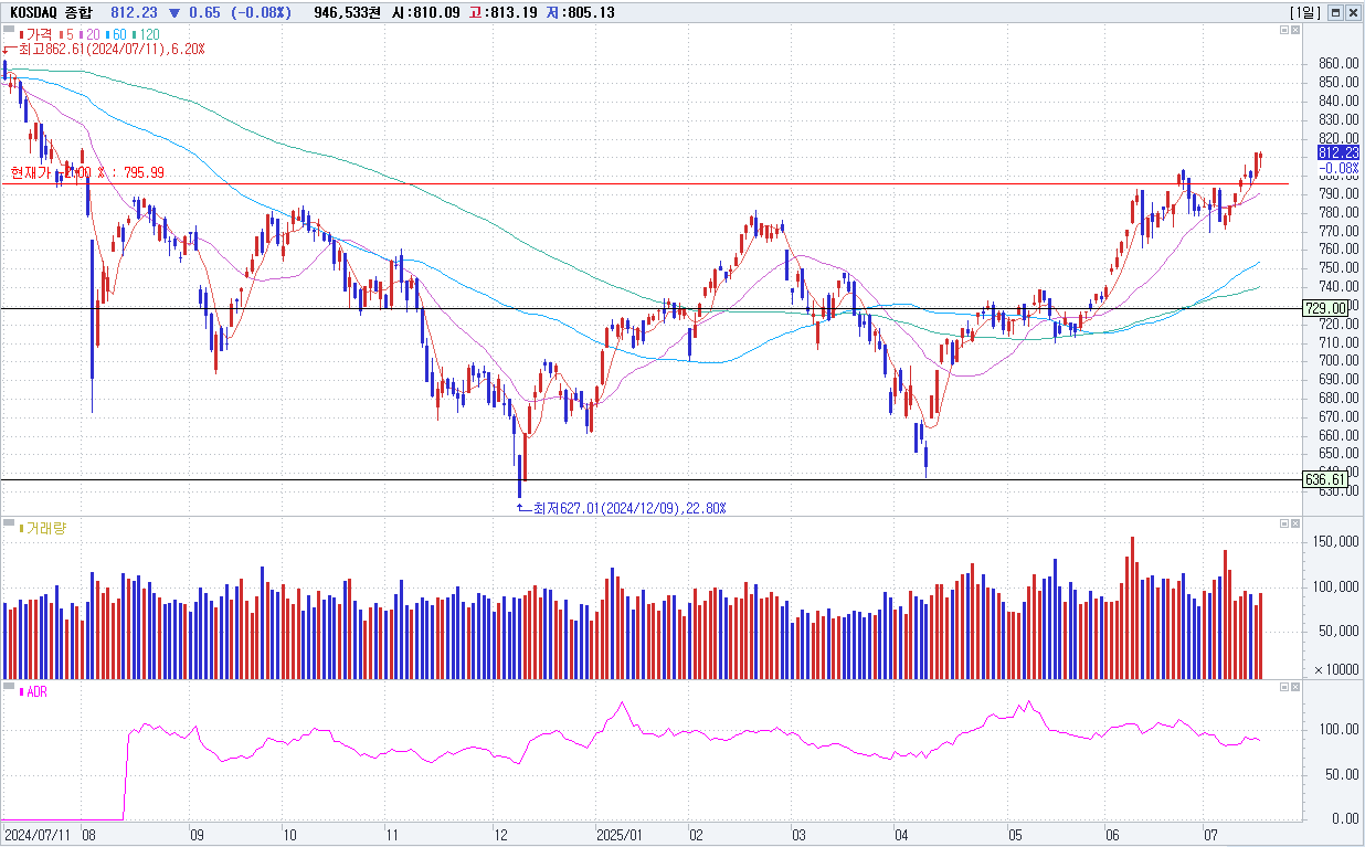 마감 지수 : KOSDAQ 812.23P(-0.65P/-0.08%)
