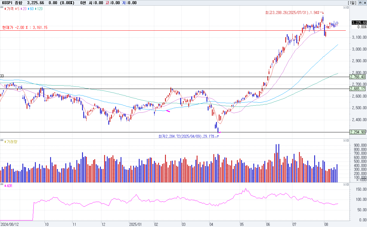 8/14 KOSPI 3,225.66(+0.04%) 美 금리 인하 기대감 지속(+), 기관 순매수(+), 외국인 순매도(-), 美 경제지표 관망