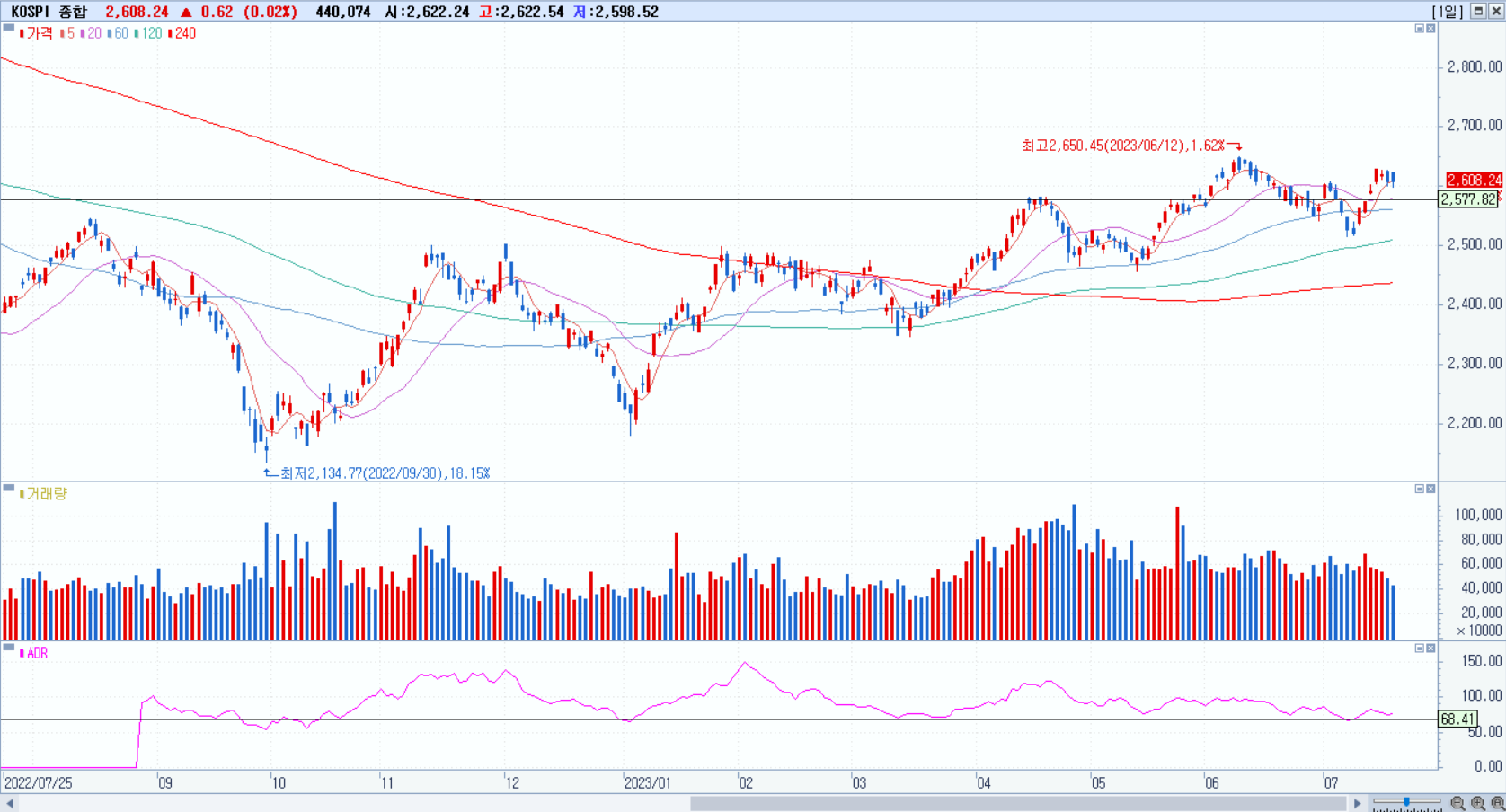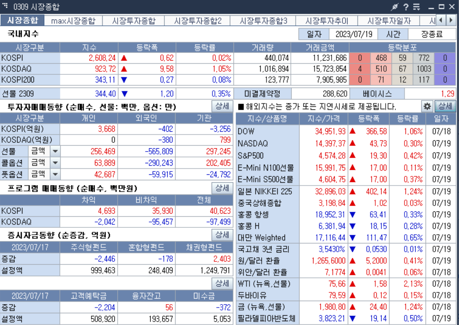 KOSPI 2608 +0.02% 상승, KOSDAQ 923 +1.05% 상승