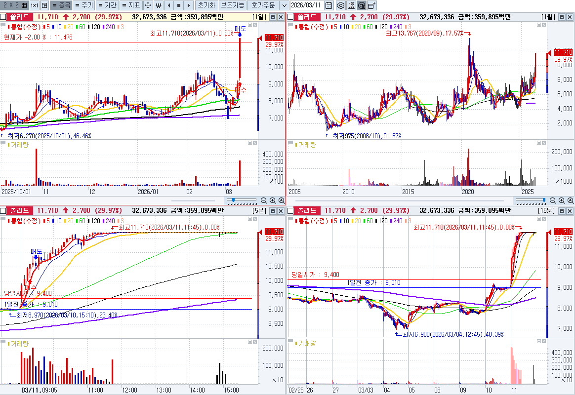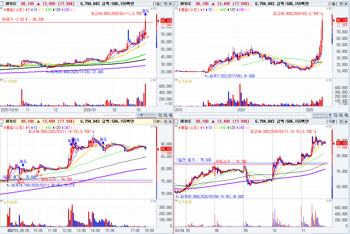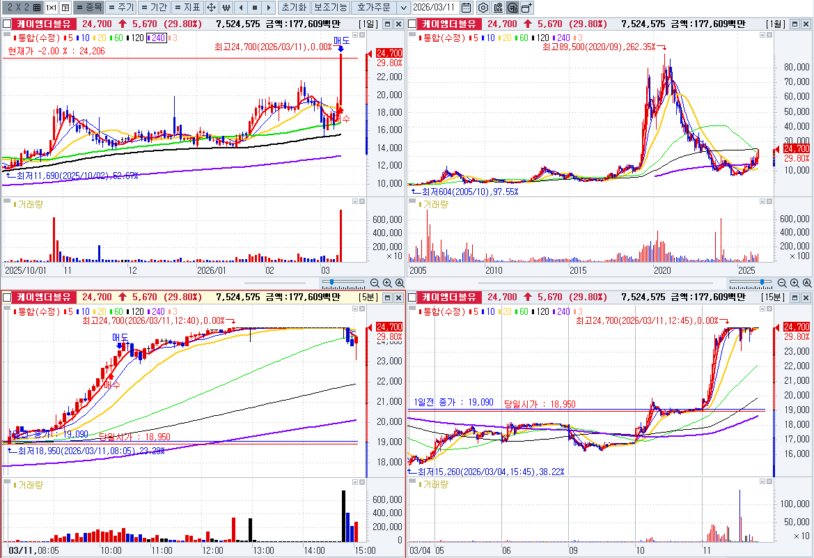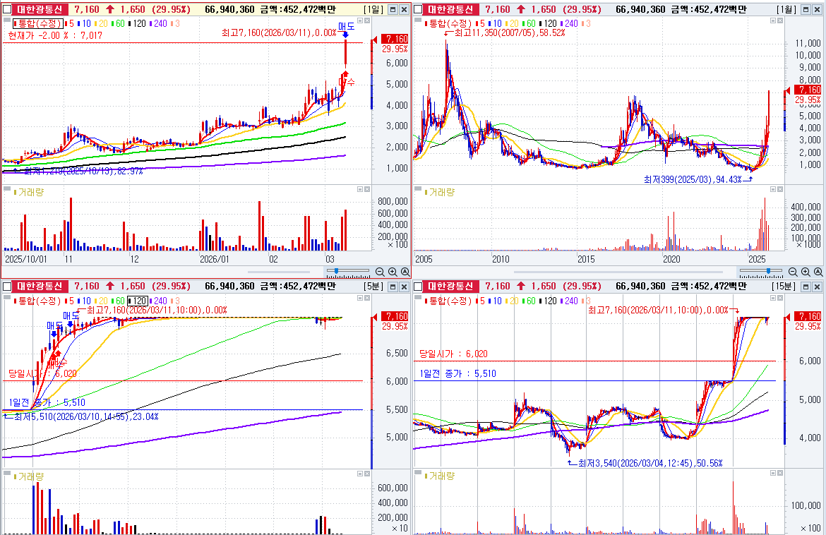 통신장비 테마가 강력하여 네번째 강한주 매수 상한가로 끝남