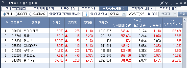 2023년 7월 28일 오늘의 주식 분석 마감 시황