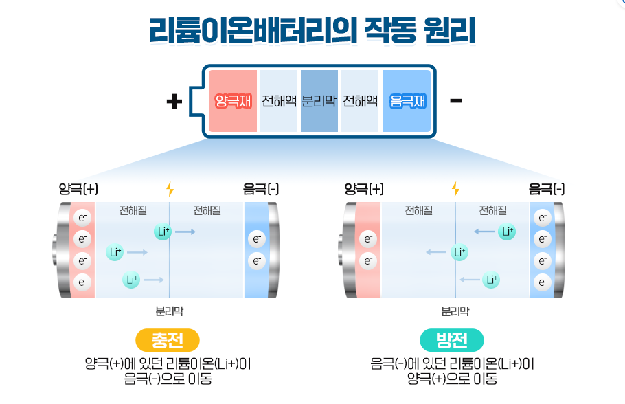 작동 원리: 리튬이온배터리는 충전과 방전 과정을 반복하며 작동합니다.