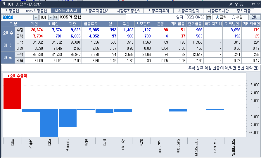 신용평가사 Fitch 미국 신용등급 AAA에서 AA+ 하향 조정으로 외국인 차익 매술 출회